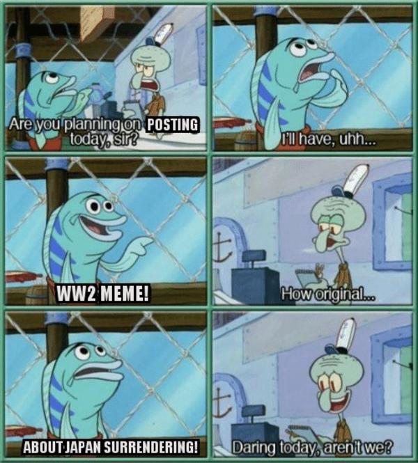 Your Spongebob Ww2 Memes Japan images are available in this website. Spongebob Ww2 Memes Japan are a theme that is being searched for and favored by netizens today. You can Get the Spongebob Ww2 Memes Japan here. Download all royalty-free picture.